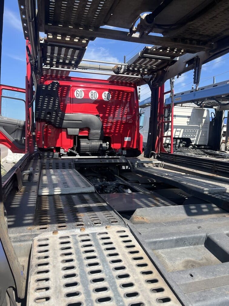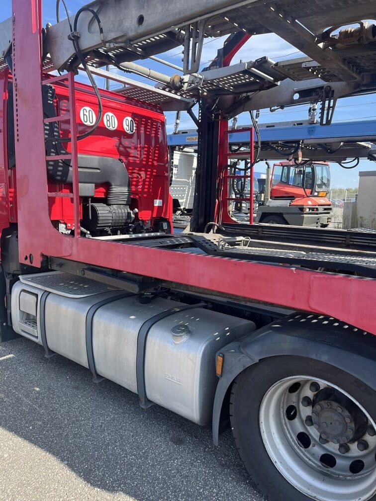 Locarem propose à la vente un porte voiture DAF de 2017 avec un remorque hydraulique 5 essieux LOHR de 2006